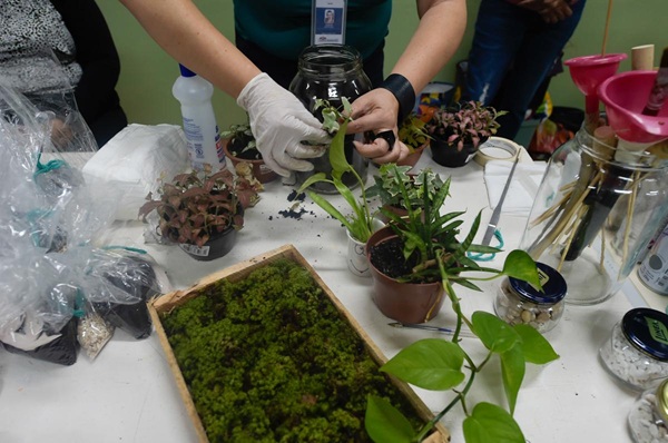 Terrários são minijardins de plantas cultivadas dentro de recipientes de vidro transparentes e que podem ser abertos ou fechados. As oficinas serão ministradas das 14h às 16h, por uma funcionária voluntária nos seguintes dias: segunda-feira (2) na unidade da Vila Galvão; na terça-feira (3), no Haroldo Veloso; na quarta-feira (4), no Bom Clima; e na quinta-feira (5), no Recreio São Jorge.
