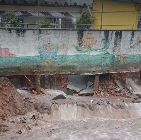 Segundo relatos da comunidade escolar, um muro localizado às margens de um rio, que passa no fundo da unidade, teria sido comprometido após as fortes chuvas registradas no dia 16 de fevereiro.