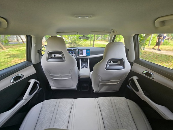 O acabamento interno deste BYD, a exemplo de outros modelos da marca, não decepciona. São materiais bonitos que elevam o nível de bem-estar a bordo. Os bancos de couro sintético são confortáveis. Contam com revestimento na cor branca e perfurado. O console central elevado completa a sofisticação. Para completar, a central multimídia com tela giratória de 12,8 polegadas e painel de instrumentos digital de 8,8 polegadas.