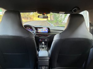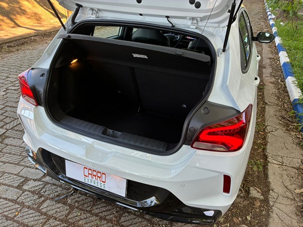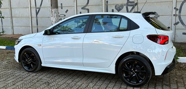Na versão RS, o apelo esportivo é evidente: grade com acabamento preto brilhante, rodas aro 16 escurecidas, teto e retrovisores em preto, além de interior com costuras vermelhas e volante esportivo. O pacote inclui faróis full-LED, central multimídia de 11 polegadas, ar-condicionado digital e volante multifuncional. O preço sugerido é de R$ 130.190, posicionando a RS como a opção mais completa do hatch.
