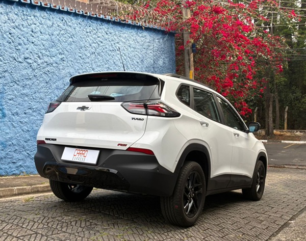 A Tracker mudou também em outros detalhes. Conforme a versão, rodas inéditas. Nesta RS, são 17 polegadas em preto diamantado. As lanternas traseiras com lente cristal completam o pacote, realçando a presença do modelo em qualquer cenário.