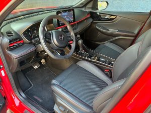 A reestilização da linha 2026 é sutil, mas perceptível para quem busca exclusividade. A grade dianteira ganhou acabamento em preto brilhante e detalhes mais agressivos, enquanto os para-choques foram redesenhados para reforçar a pegada esportiva. As rodas de 18” trazem novo desenho, e o interior agora aposta em um visual mais sofisticado: bancos tipo concha com costuras vermelhas e acabamento escurecido elevam a sensação de esportividade.