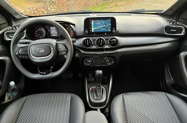 O interior também foi atualizado: o acabamento escurecido e o teto preto criam uma atmosfera mais refinada. A conectividade foi aprimorada com o espelhamento sem fio para Android Auto e Apple CarPlay, dispensando cabos e tornando a experiência de uso mais fluida. A central multimídia de 7″ touchscreen continua presente, oferecendo interface intuitiva e conectividade completa