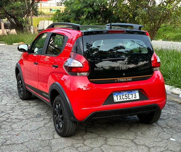 Na versão Trekking, a mais equipada da linha, o Mobi tenta agregar um pouco mais de estilo e conectividade, mas sem esconder suas limitações estruturais — principalmente quando o assunto é espaço interno.