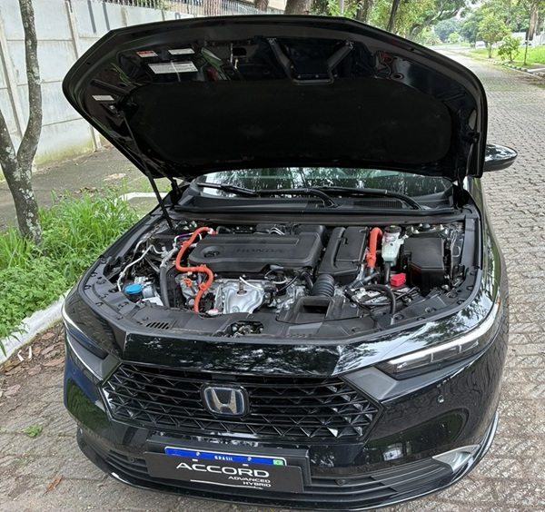 Debaixo do capô, o sedã mantém o conhecido sistema híbrido e:HEV, tecnologia desenvolvida pela Honda que combina um motor a gasolina 2.0 com dois motores elétricos e gerenciamento eletrônico inteligente de energia.