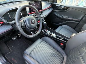 No interior, os bancos receberam novo desenho, costuras vermelhas e ajuste elétrico para o motorista, além do emblema Abarth bordado. Há também novos painéis de porta e detalhes que imitam fibra de carbono, mantendo o clima esportivo.