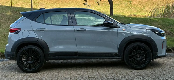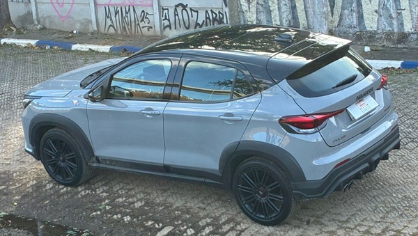 O para-choque ganhou entradas de ar maiores e detalhes em vermelho, reforçando a proposta esportiva. As rodas agora são de 18 polegadas com acabamento preto brilhante, enquanto o teto solar panorâmico passa a ser item de série, elevando o apelo premium do SUV.