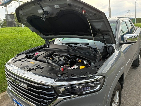 Debaixo do capô, a principal mudança está no motor. A Rampage passa a utilizar o 2.2 turbodiesel, com cerca de 200 cavalos de potência, entregando mais força e melhor resposta em relação ao conjunto anterior. O foco continua sendo o mesmo: torque em baixa rotação, eficiência e uso consistente em estrada.