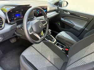 Mesmo assim, traz equipamentos que nem são tão comuns na concorrência. Em segurança, o destaque vai para o pacote de série: 6 airbags, controle de estabilidade, frenagem autônoma de emergência e piloto automático adaptativo (ACC). Isso mesmo, ACC num SUV de entrada. E ainda tem chave presencial, partida por botão e sistema Start-Stop.
