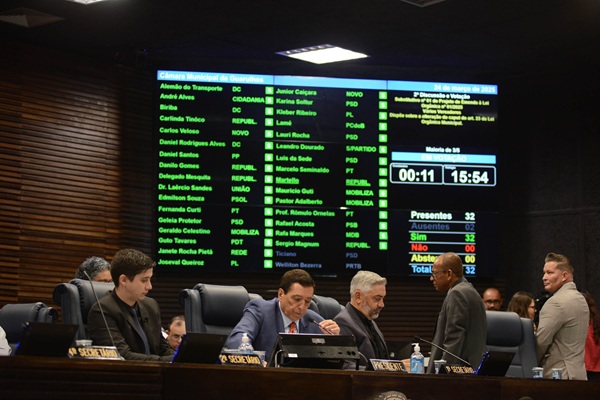 A Câmara de Guarulhos aprovou em definitivo, em sessão extraordinária, o Projeto de Resolução 1/2025 e a Emenda à Lei Orgânica 1/2025, que altera o Regimento Interno e a Lei Orgânica para permitir aos membros da Mesa e aos vice-presidentes disputar a reeleição do mandato de dois anos.