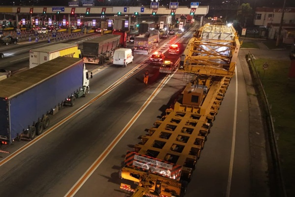 O conjunto transportador, que tem 135m de comprimento, 6m de largura e pesa mais de 800 toneladas, tem previsão de fazer uma nova movimentação pela Via Dutra nesta quinta-feira, dia 24, a partir das 6h.