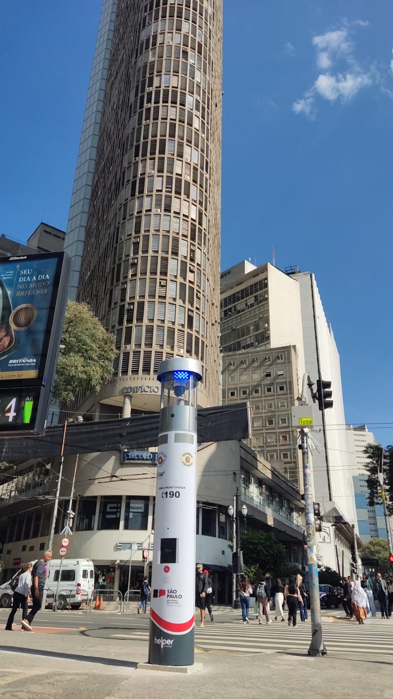As ruas do centro de São Paulo estão recebendo a instalação de dispositivos equipados com câmeras de monitoramento e alertas luminosos e sonoros para auxiliar a população durante alguma situação de emergência. Os totens têm o objetivo de aumentar a sensação de segurança nos arredores. Além dos avisos, os equipamentos permitem que as pessoas façam ligações ou videochamadas com a Polícia Militar 24 horas por dia.