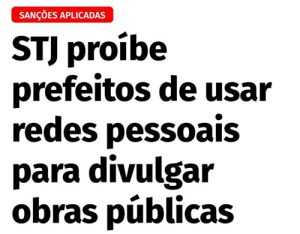 Acórdão publicado semana passada pelo STJ (Supremo Tribunal de Justiça) colocou prefeitos de todo o Brasil em polvorosa. Aponta que os chefes de Executivo municipais não poderão mais publicar em suas redes pessoais questões relativas diretamente à Prefeitura que administram. Há diferentes entendimentos, mas fica claro que o prefeito não poderá usar fotos e vídeos produzidos com dinheiro público pela Administração. Ou seja, um servidor da Prefeitura não pode fazer nada para o prefeito. Em outras palavras, limitará bastante a ação de Lucas Sanches, que canaliza toda sua comunicação nas redes sociais.