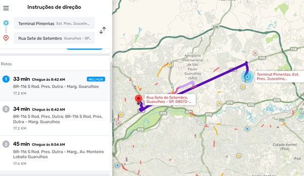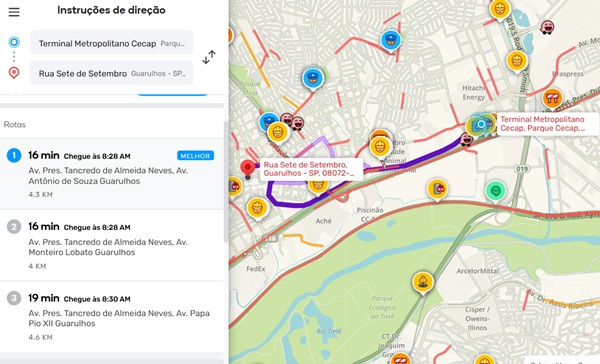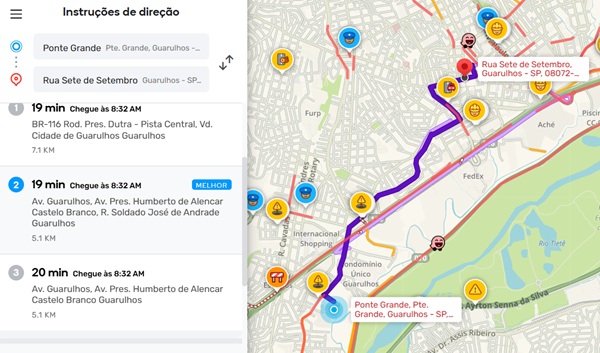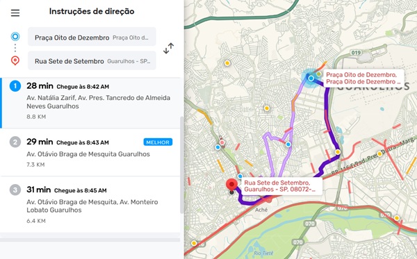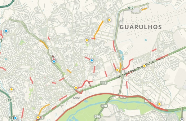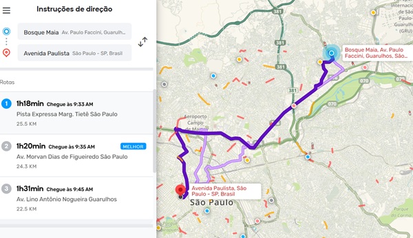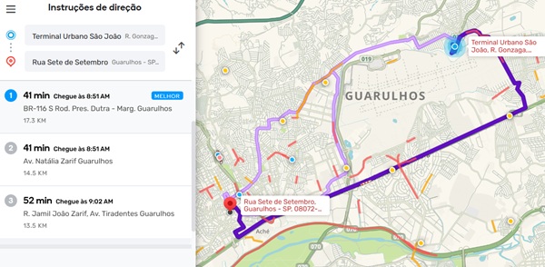 Confira as condições de trânsito em algumas rotas em Guarulhos, segundo o APP Waze, nesta terça-feira, dia 2 de setembro.