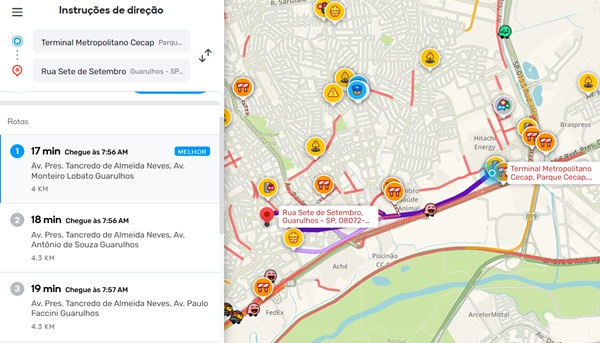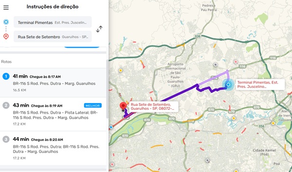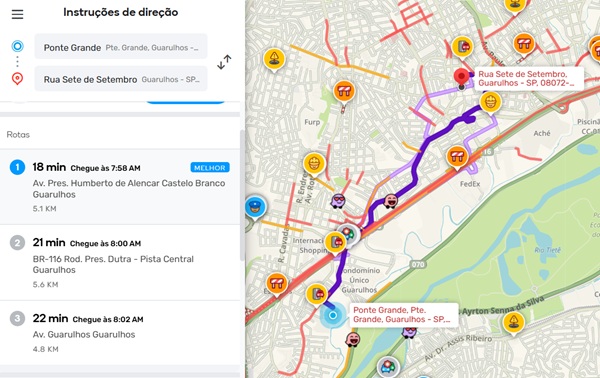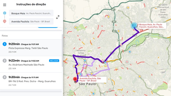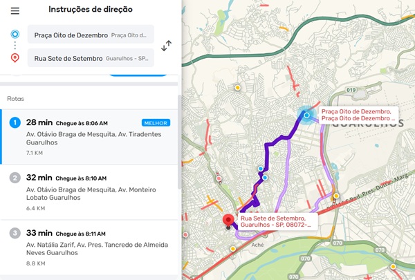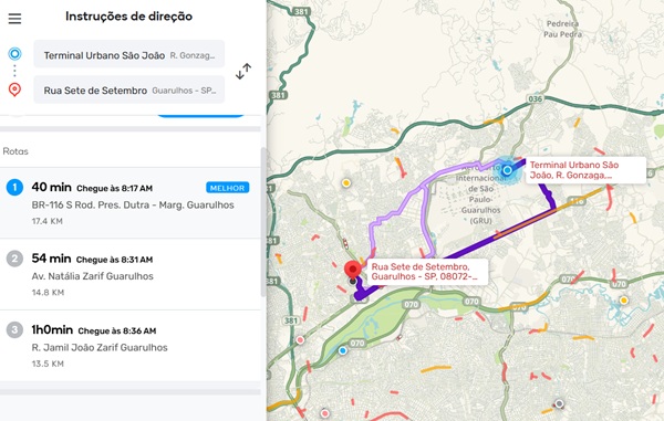 Confira aqui algumas rotas e as condições do trânsito em Guarulhos na manhã desta quinta-feira, dia 28, segundo o APP Waze: