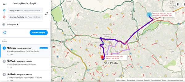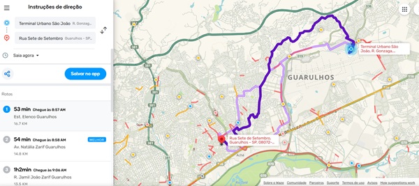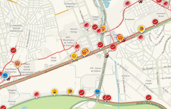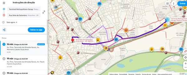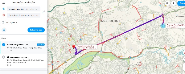 Confira alguns corredores entre regiões importantes de Guarulhos na manhã nesta quinta-feira, segundo o Waze