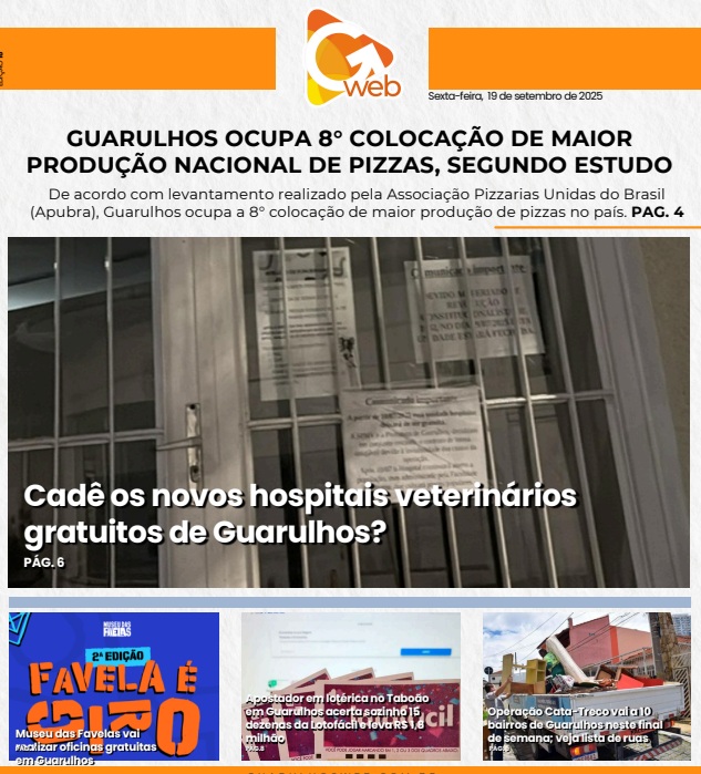 Cidades Confira o resumo com o melhor da semana no PDF do GWEB Redação Guarulhos Web19 de setembro de 2025 17:52 Acesse aqui o PDF com a edição completa do GWE GWeb – Edição 18- 19-09-2025.pdf[1] Tagsdestaque gweb pdf resumo da semana Artigos Relacionados Cidades Operação Cata-Treco vai a sete bairros de Guarulhos neste final de semana 5 de dezembro de 2025 08:57 Cidades Lucas ignora decisões do TJ e recorre ao STJ para tentar manter show no Cecap 5 de dezembro de 2025 08:29 Cidades Presidente do TJ rejeita recurso de Lucas Sanches e mantém suspensão de show no Cecap 4 de dezembro de 2025 18:39 MAIS LIDAS – Abertura de concurso público em Guarulhos lidera acessos da semana Pista expressa da Dutra sentido RJ em frente ao Internacional em Guarulhos será liberada domingo Compartilhar FacebookXPinterestLinkedIn Outras Notícias Operação Cata-Treco vai a sete bairros de Guarulhos neste final de semana Fogo em esteira de bagagem faz passageiros serem retirados de avião no Aeroporto em Guarulhos Vôlei Guarulhos recebe o Sada Cruzeiro nesta segunda-feira pela Superliga Lucas ignora decisões do TJ e recorre ao STJ para tentar manter show no Cecap Final de semana será de tempo firme e temperaturas amenas em Guarulhos Confira os melhores caminhos de trânsito em Guarulhos nesta sexta-feira