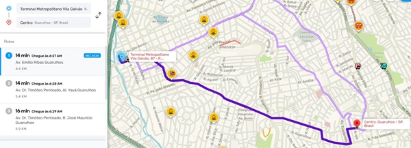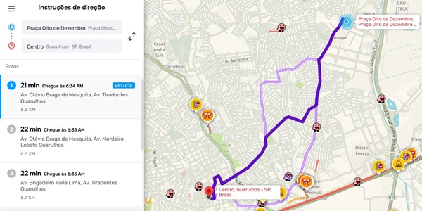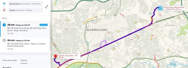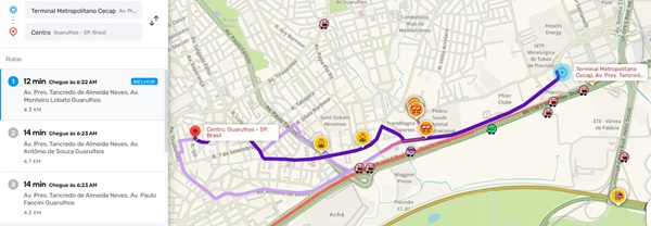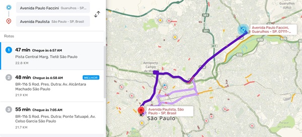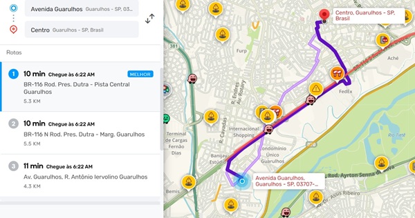 Confira as condições de trânsito em algumas rotas em Guarulhos, segundo o aplicativo Waze, nesta sexta-feira (12).