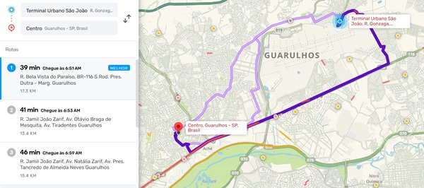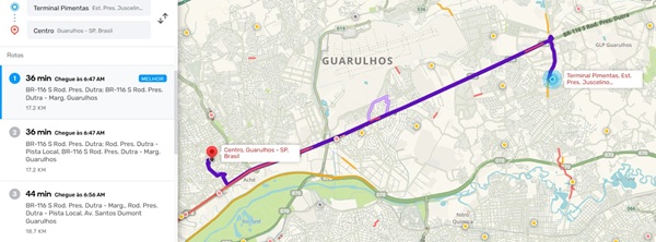 • Do Terminal Metropolitano Vila Galvão ao Centro: