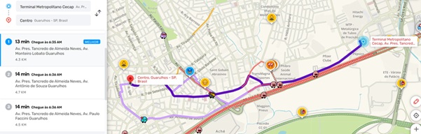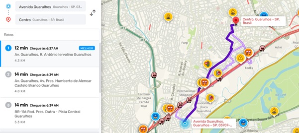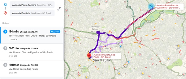 Confira as condições de trânsito em algumas rotas em Guarulhos, segundo o aplicativo Waze, nesta sexta-feira (05).