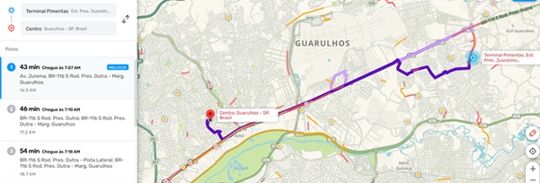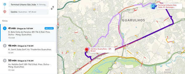 - Do Terminal Metropolitano Vila Galvão ao Centro: