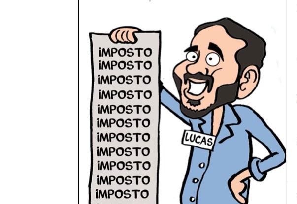 A charge assinada por Leandro Franco conta com uma música que faz menção aos aumentos de impostos e questiona Lucas Sanches: “Ô Lucas, tu tá loucão?”.