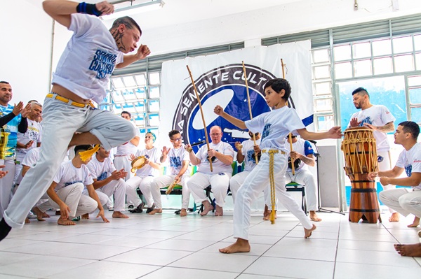 A capoeira nasceu como forma de resistência dos negros escravizados no Brasil e tornou-se um símbolo de luta e resistência. Com o passar dos anos, consolidou-se como uma prática complexa e rica, que alia musicalidade, movimento, disciplina, estratégia e coletividade. Hoje reconhecida mundialmente, a capoeira é também uma ferramenta pedagógica, promotora de igualdade e inclusão social. “A prática representa, também, uma oportunidade para tirar o jovem do risco social e dar a ele uma nova perspectiva de vida”, explica Jorge Caniba Batista dos Santos, subsecretário da Igualdade Racial de Guarulhos, praticante de capoeira.