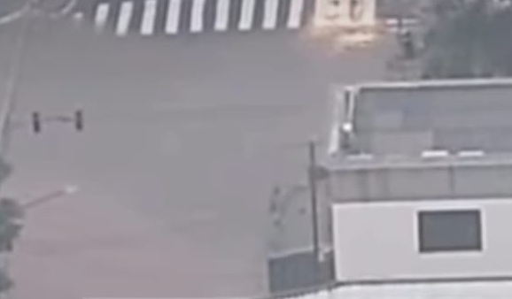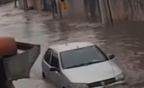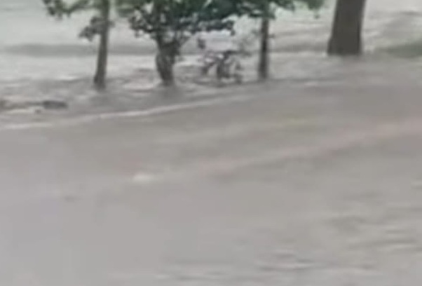 A avenida Tiradentes, próximo ao cruzamento com a rua Nilo Peçanha, também está tomada pela água. Nenhum carro passa pelo local.