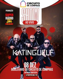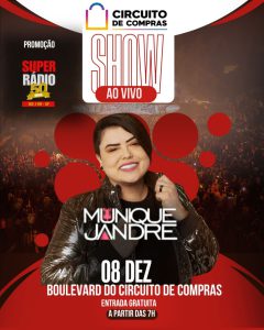 O maior shopping popular da América Latina será palco de apresentações gratuitas de Munique Jandre e do grupo Katinguelê, em uma ação promovida pela Super Rádio 102,1 FM, que completa 50 anos de história no mês de dezembro.