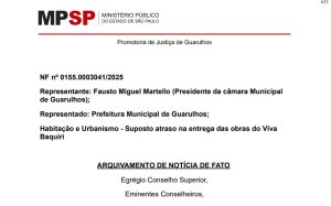 O Ministério Público do Estado de São Paulo decidiu arquivar a investigação que apurava supostos atrasos e irregularidades nas obras do Programa Viva Baquirivu, em Guarulhos. A decisão conclui que não houve desvios de recursos, ilegalidades contratuais nem atrasos estruturais que comprometam o cronograma.