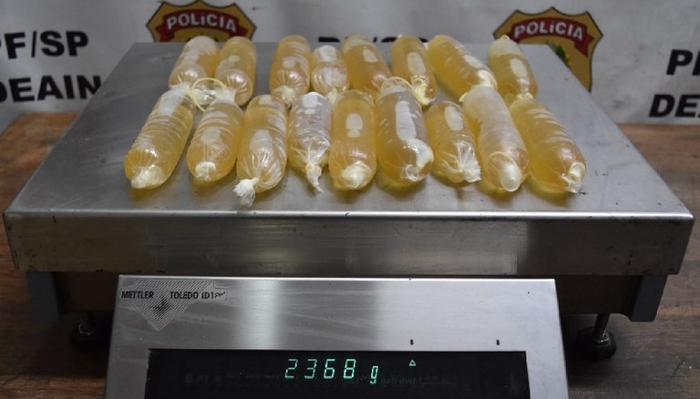Mulher é presa em Guarulhos com 2 kg de cocaína líquida escondida em preservativos