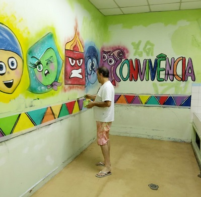 Ele, que também é grafiteiro, contou com a ajuda dos adolescentes assistidos na unidade e, juntos, deram mais vida à sala de convivência, que ganhou desenhos animados com significado psicológico, representando os sentimentos. No ambiente, jovens entre 14 a 18 anos incompletos se reúnem para atividades variadas como assistir televisão, jogar vídeo game, desenhar e pintar. “A iniciativa foi muito importante para potencializar a todos como protagonistas da ação”, destacou a gerente do Caps, Márcia Mendes de Mattos.