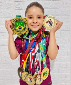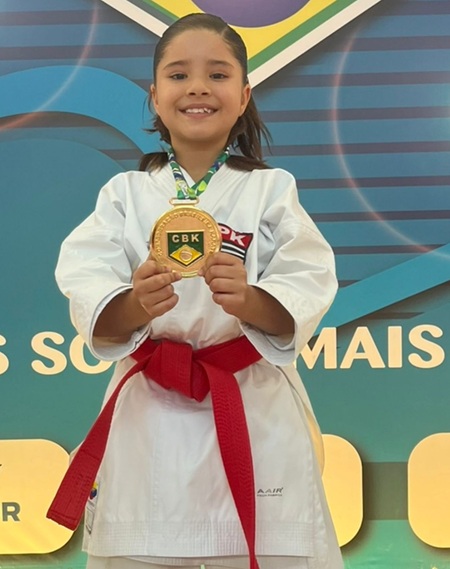 Com apenas 9 anos, Valentina Morais já é referência no karatê paulista e nacional. Ela acumula títulos expressivos em sua curta, mas brilhante carreira: é tricampeã paulista consecutiva, bicampeã brasileira da etapa Zonal em Londrina e foi terceira colocada no Campeonato Brasileiro de 2024.