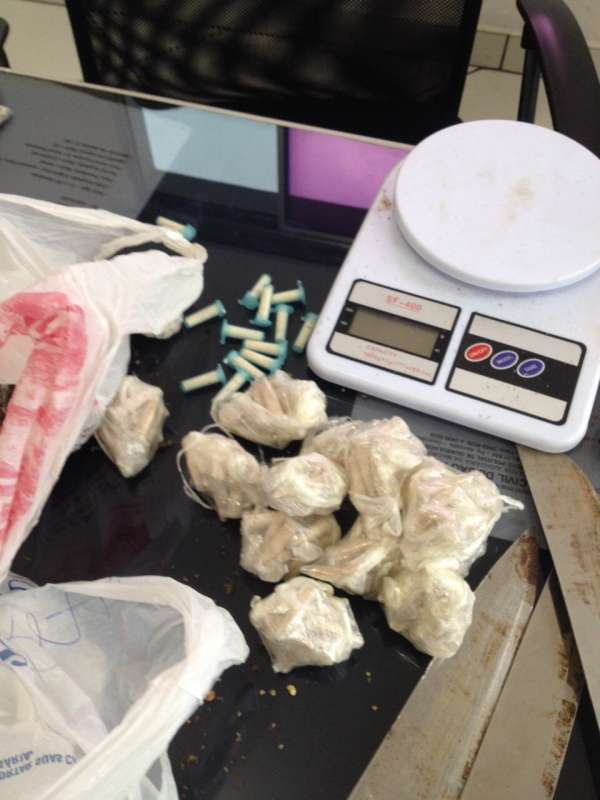 Na casa foram encontradas ferramentas, balanças de precisão, facas, sacos com eppendorfs – pinos usados para revenda de cocaína – plásticos para embalar drogas, tijolos contendo maconha, cigarros de maconha prontos para consumo e pedaços de maconha preparados para serem embalados.