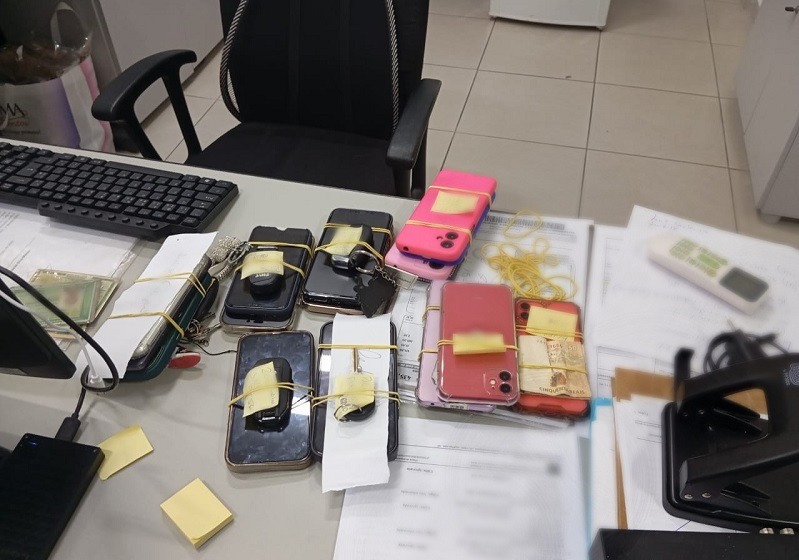 No sítio onde a estrutura foi montada, os agentes apreenderam seis veículos, R$ 3,8 mil em espécie, 51 celulares, 86 chips telefônicos, cinco notebooks, além de papéis e cadernos com anotações diversas. A perícia foi acionada para o endereço.