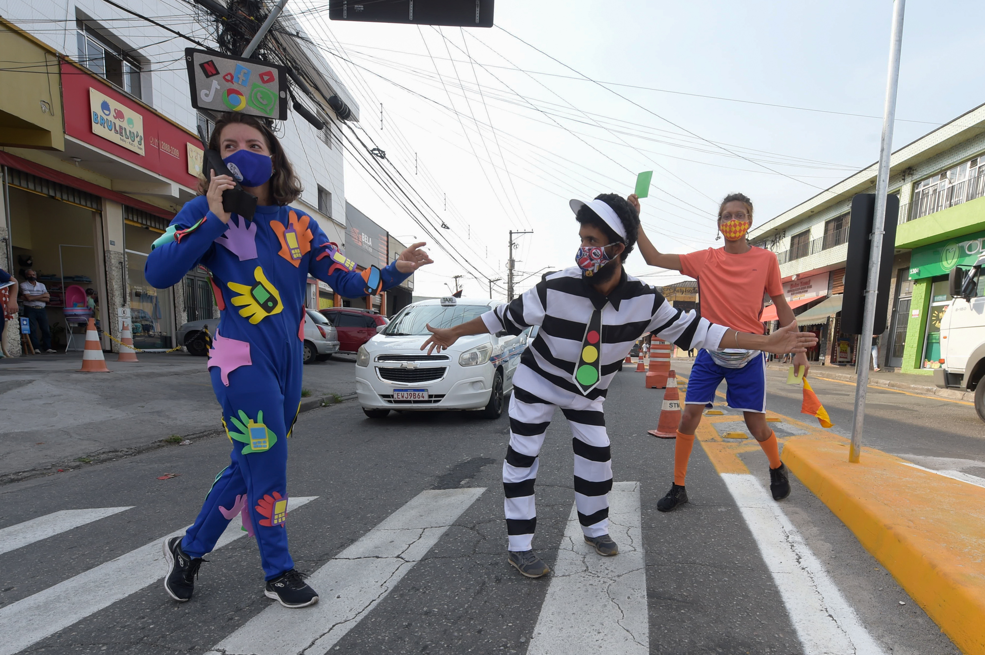 Além disso, a Secretaria de Transportes e Mobilidade Urbana (STMU) também promoveu atividades em faixas de pedestres na praça Oito de Dezembro, região do Taboão, e no cruzamento entre a avenida Faria Lima e a rua Antônio Artoni, no Jardim Cocaia. Para chamar a atenção sobre travessia segura os atores se fantasiaram de celular, faixa de pedestre e juiz, que parabenizava aqueles que completavam a travessia pela faixa com um cartão verde.