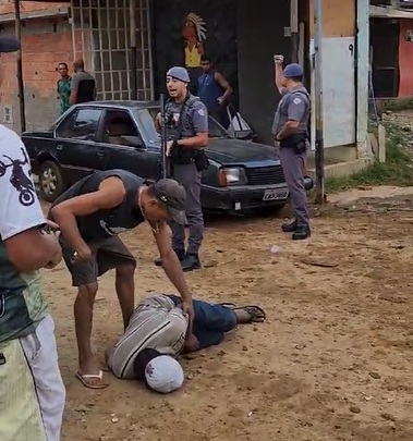 Imagens que circulam nas redes sociais mostram um morador da ocupação Terra Prometida, na Estrada do Elenco, em Guarulhos, conversando com dois policiais militares durante reintegração de posse na manhã desta terça-feira. De repente, o homem é surpreendido com um tiro que teria sido disparado por um desses agentes. Atingido na perna. ele imediatamente cai.