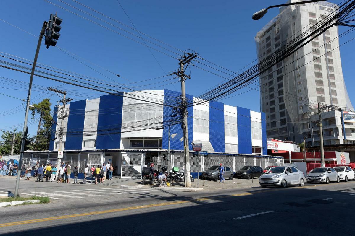 Há marcação no chão para as filas, nas quais os usuários terão as temperaturas aferidas com termômetro, e disponibilização de álcool em gel para a higienização das mãos.