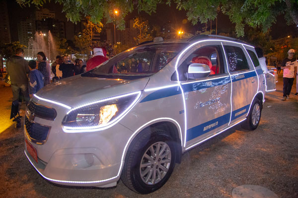 Os Táxis Iluminados da Guarucoop (Cooperativa dos Taxistas do Aeroporto Internacional de Guarulhos) vão acompanhar a chegada do Papai Noel na 9ª edição do Guararema Cidade Natal. O bom velhinho chegará ao município por volta de 20h desta sexta-feira, 14, em grande estilo, a bordo de um Pontiac Bonneville conversível vermelho, ano 1963, que será acompanhado pelos carros iluminados da cooperativa guarulhense.