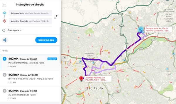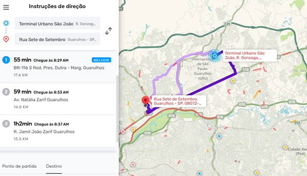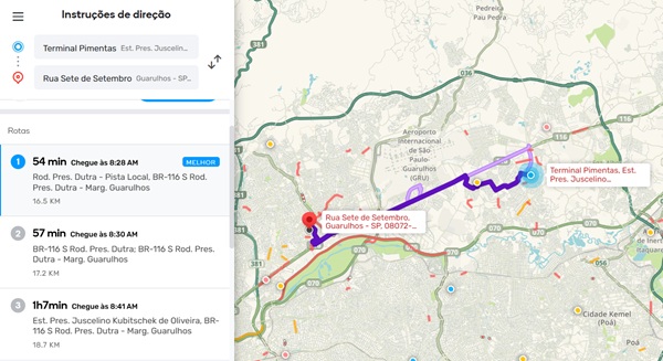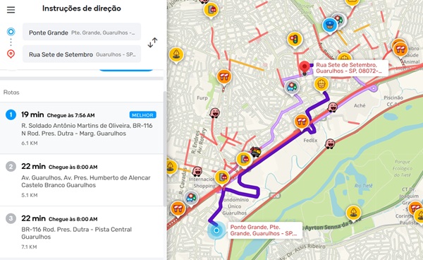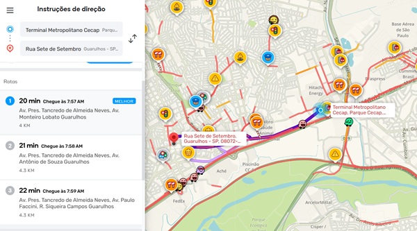 Confira o trânsito em Guarulhos e algumas rotas na manhã desta quarta-feira, dia 27, segundo o app Waze.