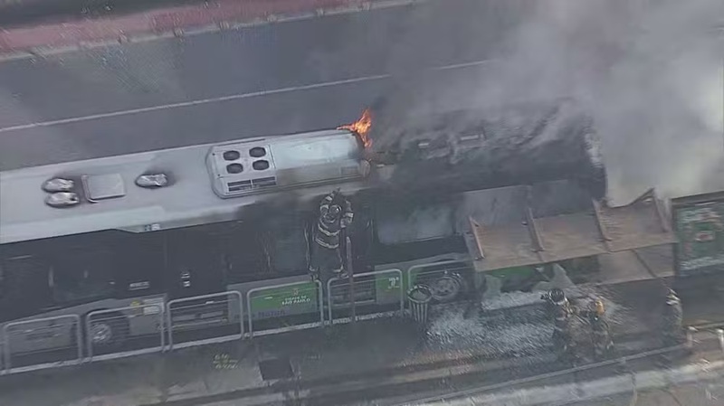Na queda, a aeronave atingiu um ônibus, que ficou em chamas. De acordo com a SPTrans, o prefixo do ônibus é 732, da viação Santa Brígida