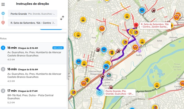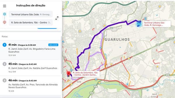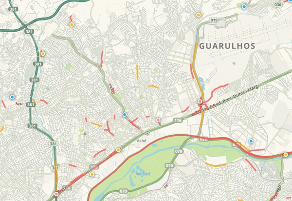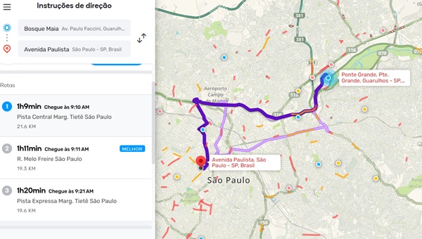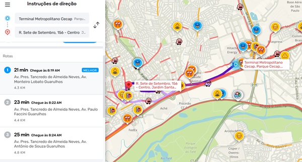 Confira como está o trânsito em algumas rotas e melhores alternativas viárias na manhã desta segunda-feira, dia 25, em Guarulhos, segundo o APP Waze: