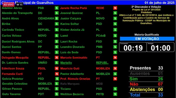 O prefeito Lucas Sanches (PL) conseguiu a aprovação de seu projeto que onera ainda mais o comércio e a indústria de Guarulhos, com o considerável aumento da Cosip, a taxa de iluminação pública. Contrariando seus discursos de campanha, quando dizia que era contra taxas e impostos, com a aprovação de 27 vereadores em primeira votação e 26 na segunda, Lucas institui a alíquota de 6% para a indústria e 4% para o comércio. Antes, assim como os consumidores residenciais, todos pagavam por faixa de consumo.