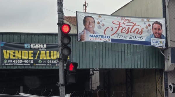 As peças foram instaladas em regiões como Centro, Vila Galvão, Taboão, Cecap, Pimentas e Bonsucesso, chamando a atenção pelo padrão visual semelhante e pela repetição da imagem do prefeito ao lado de parlamentares municipais.